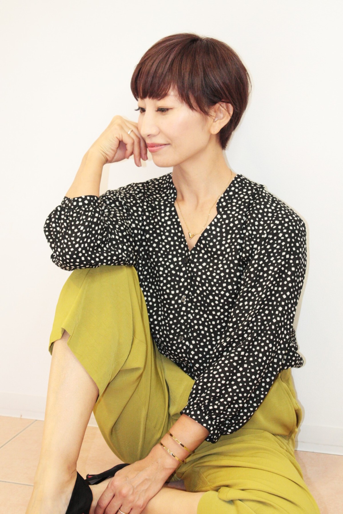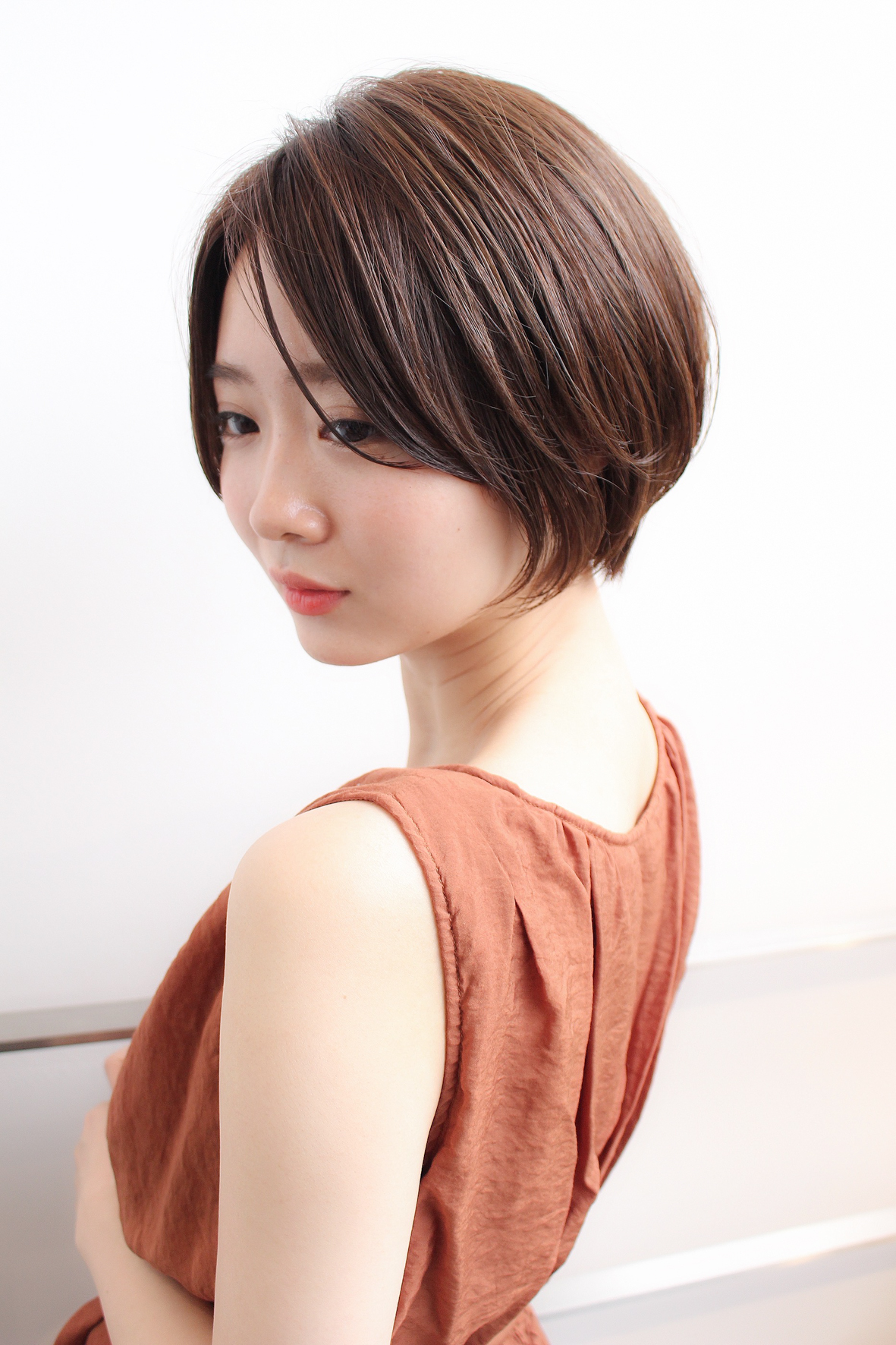 耳にかけたショートスタイル頬骨が気になる方は耳にかけないことによって小顔効果になります。