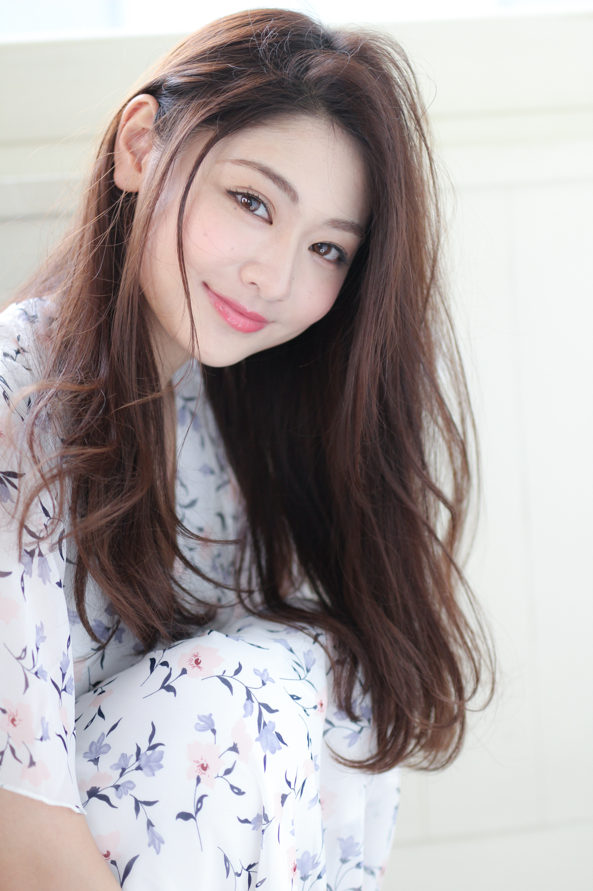 前髪のないロングスタイル柔らかいカラーとゆるくカールがプラスされることによりモデルさんの雰囲気によく合う感じに仕上がってます。
